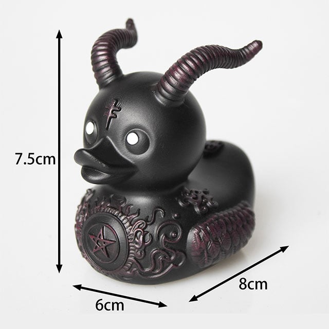 Deep within the labyrinthine passages of Darkiville's most secretive boutique, Hell's Quack, a figure full of wonders and whispered legends sits on an onyx throne. This figure is none other than Lord Bezequak, the Satan Duck, a mythical creature brought to life by resin.