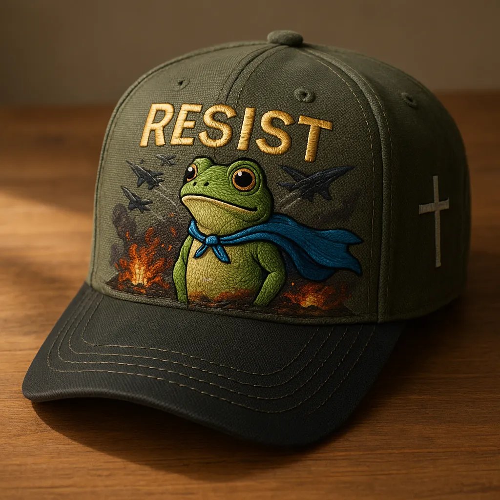 The Portland Frog Cap is more than just headwear — it’s a reminder to stand tall, stay calm, and hold your ground when the world feels unsteady. Designed as a symbol of moral courage and quiet strength, it blends artistic storytelling with purposeful design. Every detail — from the steadfast frog to the word “RESIST” — speaks to those who believe that resilience and conviction can outshine chaos. This cap inspires you to face life’s battles with integrity, confidence, and unwavering faith.